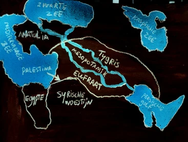 The doorbell rings. My aunt. I hear her loud voice from the hallway. Her three daughters enter, corduroy pants, bows in their hair, blouses with frills. More school projects; even more virtuoso, and not about tired topics like the Greeks, but the drainage basin between the Euphrates and the Tigris—ancient Mesopotamia.